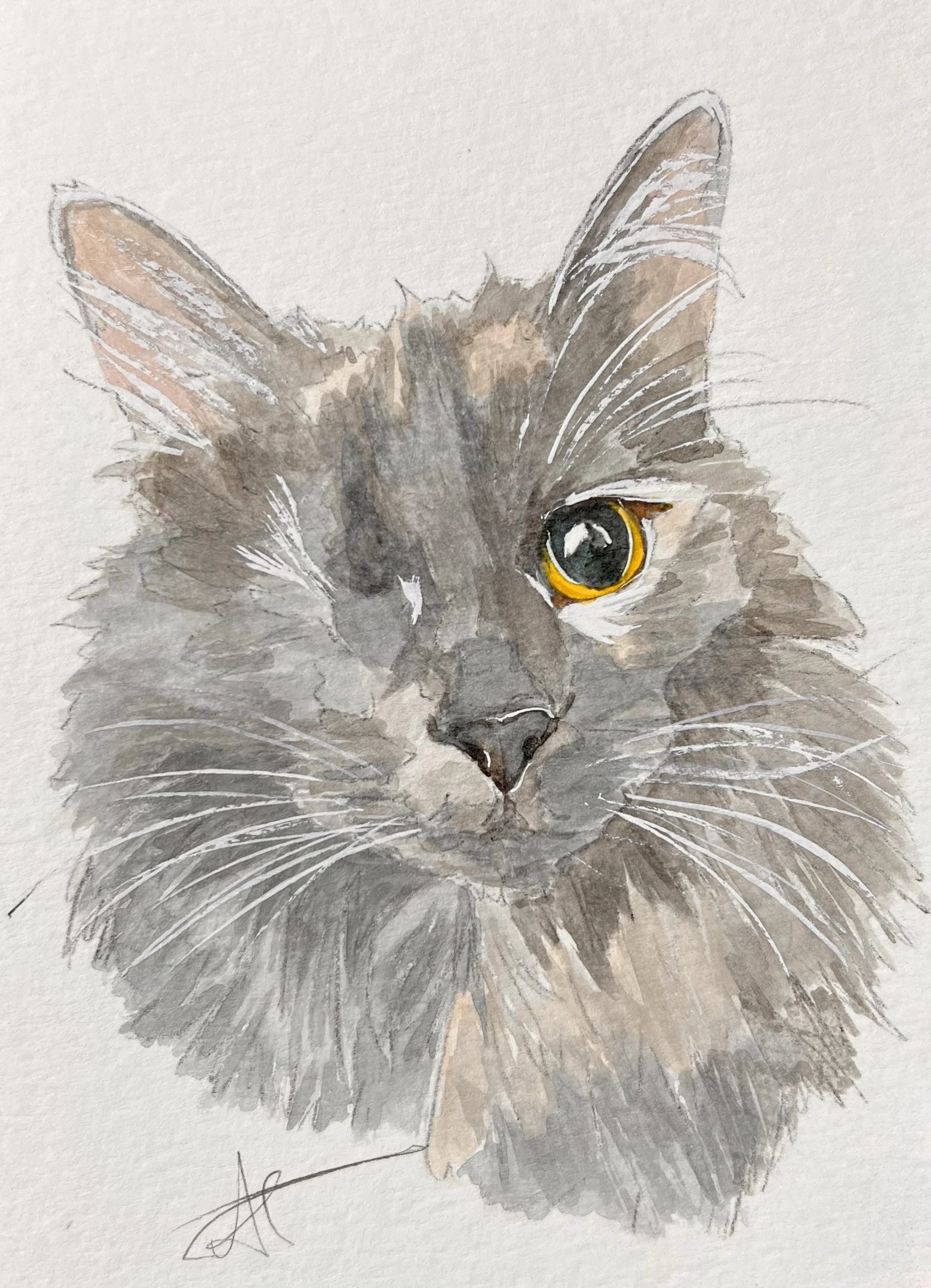 One of a kind hand-painted watercolor pet portrait created with love, care, and special attention to detail so that you can receive a timeless memory of your best friend.
